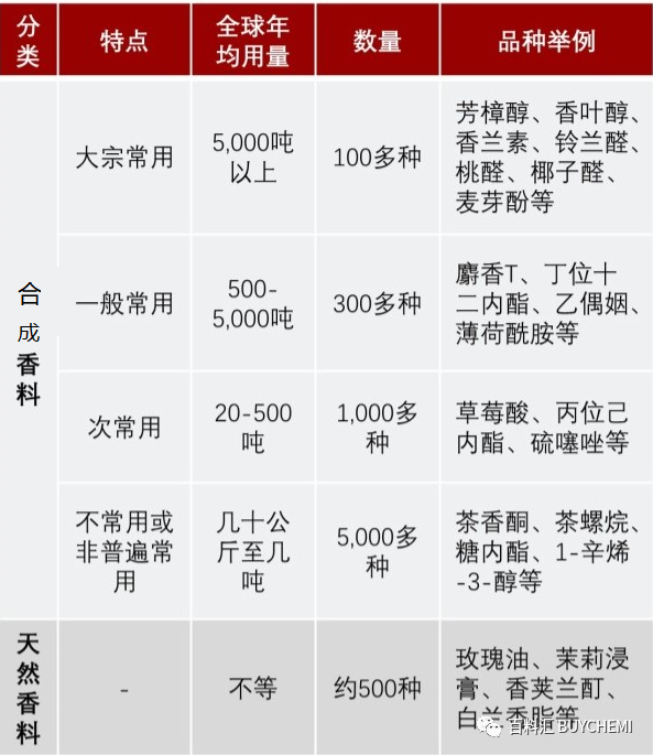 目前世界上香料品種近6000種,大部分年產(chǎn)量在100噸以下。
