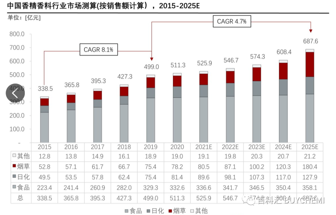中國(guó)香精香料行業(yè)尚處于依靠原材料加工向國(guó)外出口階段,煙草行業(yè)受政策和新產(chǎn)品影響較大,有一定的波動(dòng)性。