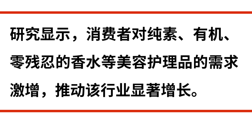 督促升級改造的進程離不開消費者的需求。據(jù)市場研究公司Frost & Sullivan的最新調(diào)查報告Growth Opportunities for Natural Fragrances inPersonal Care顯示,消費者對純素、有機、零殘忍的香水等美容護理品的需求激增,推動該行業(yè)顯著增長。