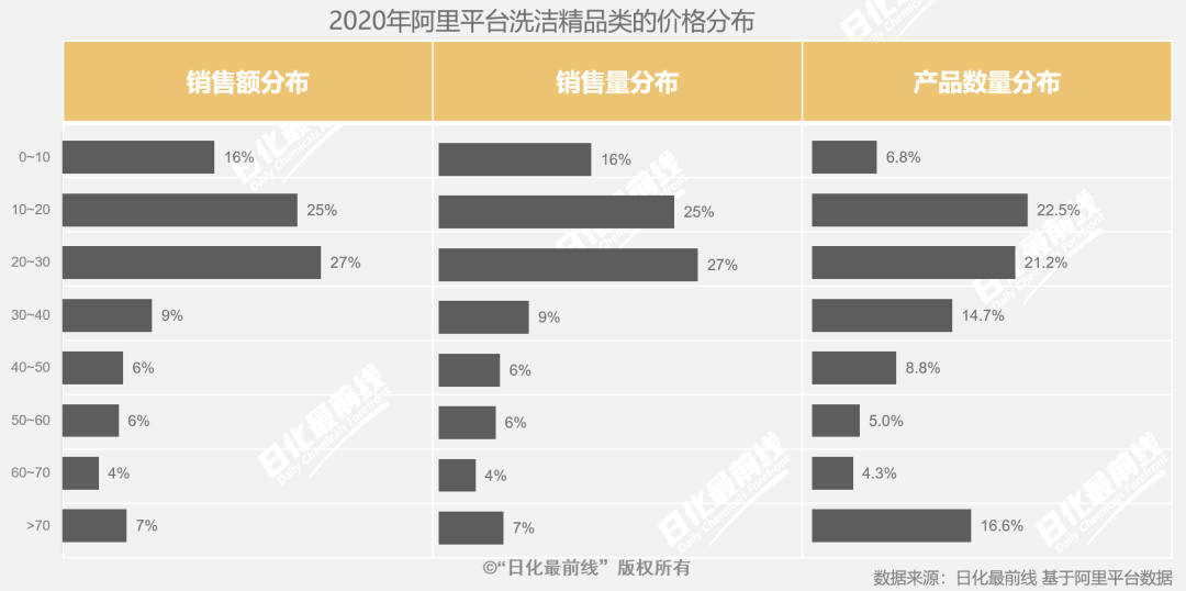 · 2020年阿里平臺洗潔精價格分布情況