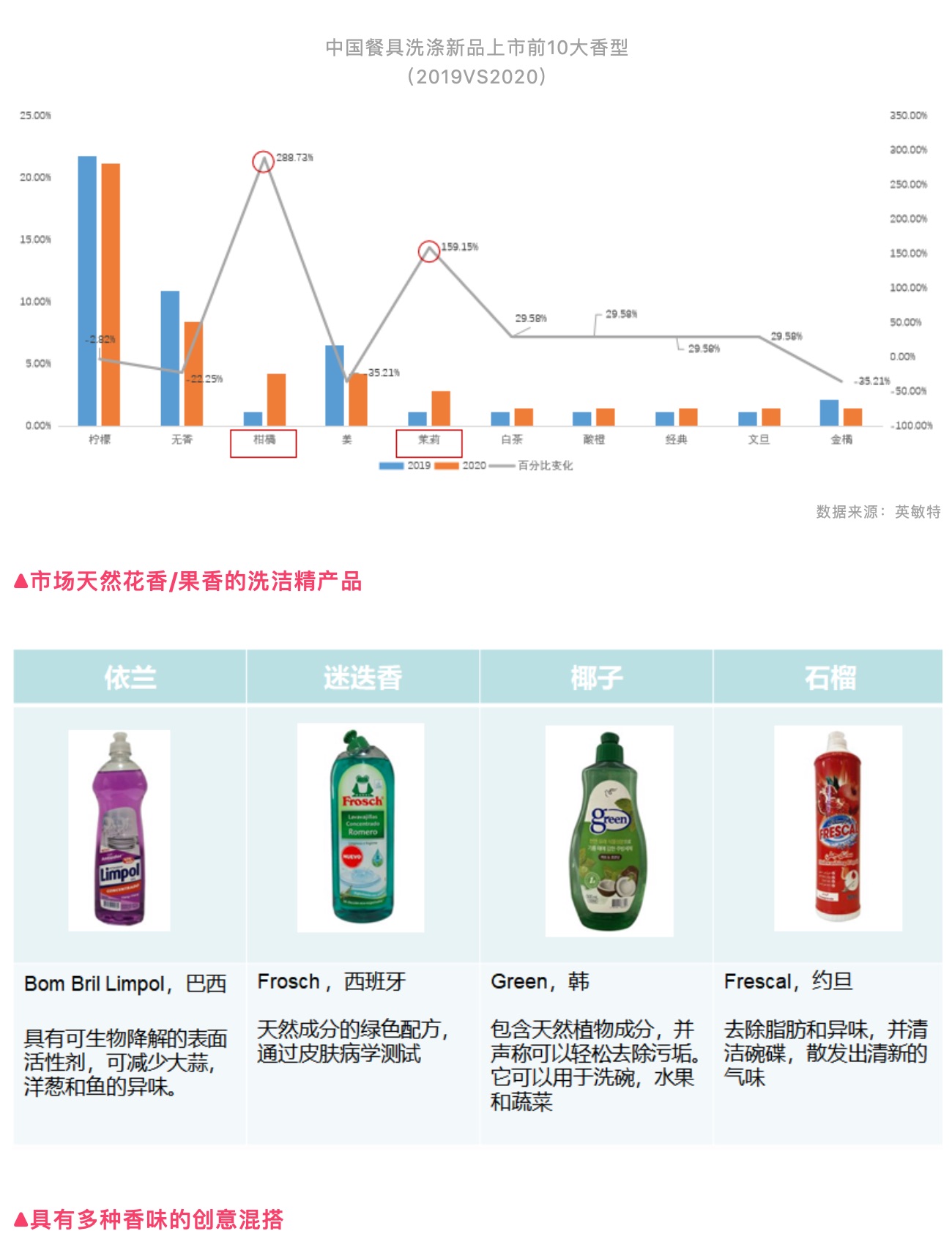 越來(lái)越多的品牌推出了多種香味創(chuàng)意混搭的洗潔精產(chǎn)品: