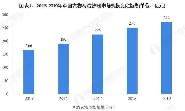 據(jù)弗若斯特沙利文統(tǒng)計(jì)調(diào)研數(shù)據(jù)顯示,2015年以來(lái),我國(guó)洗衣液市場(chǎng)零售總額持續(xù)增長(zhǎng),到2019年底,全國(guó)洗衣液市場(chǎng)零售總額增長(zhǎng)至272億元,年均復(fù)合增長(zhǎng)率為13.1%。