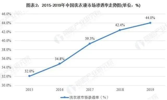 從洗衣液滲透率來(lái)看看,目前,我國(guó)洗衣液越來(lái)越受到消費(fèi)者的偏好。2015年以來(lái),我國(guó)洗衣液市場(chǎng)滲透率已由32.0%增長(zhǎng)至44%,提高十多個(gè)百分點(diǎn)。從走勢(shì)來(lái)看,洗衣液逐步替代洗衣粉,成為我國(guó)主要洗滌劑已成定局。