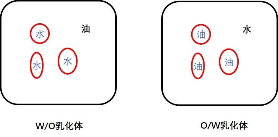 乳化體兩種基本類型:W/O乳化體表示“油包水”乳化體和O/W乳化體表示“水包油”乳化體。