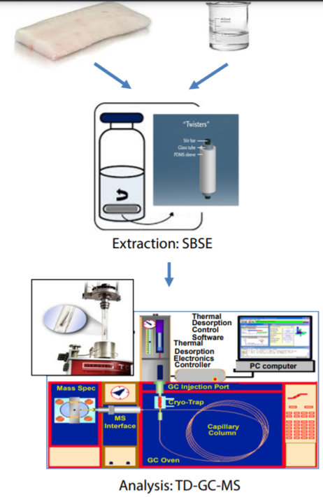 攪拌棒吸附萃取法是由Baltussen等人在1999年首次提出的,此后作為一種高效的樣品制備技術(shù)獲得了廣泛的認(rèn)可,用于富集水樣中的溶質(zhì)。SBSE-TD-GC-MS已被應(yīng)用于諸如葡萄酒中的農(nóng)藥和花卉化合物、生物液體中的有機(jī)溶質(zhì)以及水溶液中農(nóng)藥的快速篩選等多種應(yīng)用。使用聚二甲基硅氧烷(PDMS)作為萃取相的SBSE可以實(shí)現(xiàn)高回收率和極低的檢測(cè)限(LOD),可以從水樣中提取和富集相對(duì)極性的溶質(zhì)(log Kow > 3.0)。使用PDMS(Twister)的SBSE的優(yōu)點(diǎn)之一是可以從水基食品基質(zhì)中提取相對(duì)GC友好的溶質(zhì),而不富集非揮發(fā)性溶質(zhì),如氨基酸、糖類、糖苷、多酚等。事實(shí)上,從這種復(fù)雜的基質(zhì)中提取后,攪拌棒可以在超純水中進(jìn)行短暫的沖洗,以去除任何附著的物質(zhì),然后用無(wú)絨紙巾擦干。