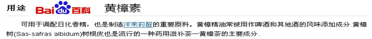 這兩個(gè)網(wǎng)頁(yè)都表明這兩種原料適合用作食品用香料,真的可以嗎?我國(guó)GB2760-2011中并未包含黃樟素和異黃樟素。這種誤導(dǎo)作用需要引起高度重視。