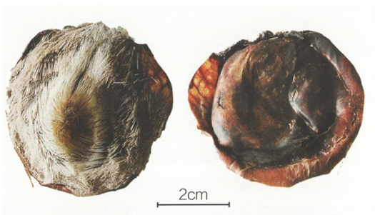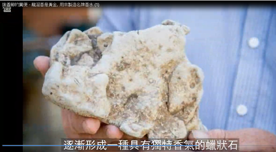 偶爾會(huì)有些難以消化的固體物質(zhì)進(jìn)入抹香鯨的腸道并隨著腸道的蠕動(dòng)進(jìn)入直腸,與糞便混合并使糞便結(jié)成半固體狀。因?yàn)槟ㄏ泠L的正常糞便是液態(tài)的,它的肛門(mén)也不能排出固態(tài)的糞便,這些半固體狀會(huì)堵塞直腸,導(dǎo)致排便困難。為了使排便恢復(fù)暢通,它只好加強(qiáng)了腸壁對(duì)糞便中水分的重吸收,使阻塞物體積縮小,并透過(guò)腸道蠕動(dòng)使其表面變得光滑,形成糞石。這樣一來(lái),液態(tài)的糞便就能通過(guò)阻塞物和直腸壁的空隙排出了。但阻塞物就像一個(gè)小水壩,截留了糞液帶來(lái)的新的固體物,于是糞石越裹越大,并在抹香鯨的腸道中經(jīng)過(guò)細(xì)菌和各種酶的復(fù)雜加工,最終形成龍涎香。大約100頭抹香鯨中,只有一頭體內(nèi)有龍涎香。雖然糞石本身對(duì)抹香鯨沒(méi)有太大的危害,但如果長(zhǎng)得太大,就可能使腸壁破裂,最終導(dǎo)致抹香鯨的死亡。1914年,就有一位捕鯨人在抹香鯨腸道中發(fā)現(xiàn)過(guò)一塊重達(dá)455公斤的龍涎香。