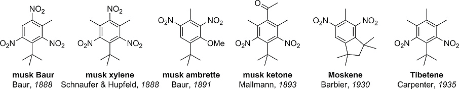 1888年,科學(xué)家艾伯特·波爾是第一個(gè)創(chuàng)造出人工麝香的人。他發(fā)現(xiàn)麝香的過(guò)程完全是一個(gè)巧合——在他研究TNT炸藥的時(shí)候,突然聞到了一股類(lèi)似麝香的香味。這種化合物后來(lái)被稱(chēng)為Nitro-musk。這種物質(zhì)就是人工麝香家族中的第一位成員,但后來(lái)由于它的不穩(wěn)定性和輕微毒性被禁止使用了。后來(lái)發(fā)明的多環(huán)麝香(polycyclicmusk)跟天然麝香的氣味最相似,不過(guò)造價(jià)也很高昂,它在香水業(yè)被廣泛使用。