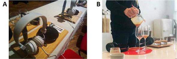 最后,你會(huì)通過(guò)一副無(wú)線耳機(jī)獲得一杯咖啡,以提供真正的多感官品嘗體驗(yàn)[154]。與此同時(shí),在多感官咖啡體驗(yàn)設(shè)計(jì)的高端領(lǐng)域,像Rasmus Helgebostad和Matt Winton這樣的頂級(jí)咖啡師在幾年前就制作了一種聲學(xué)增強(qiáng)咖啡飲料,作為他們咖啡師錦標(biāo)賽的一部分(見(jiàn)圖2)。
